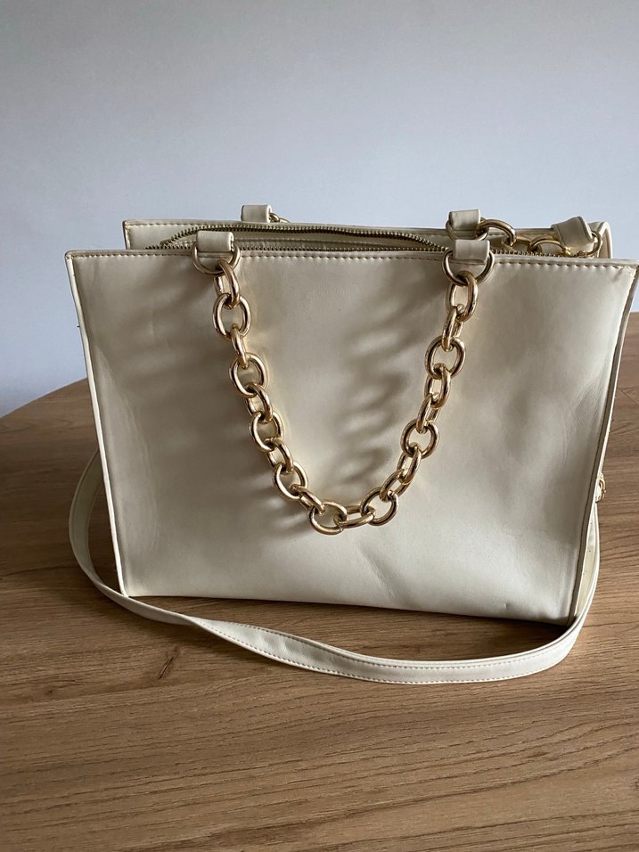 Bej Zincir Detaylı Kadın Deri Çanta