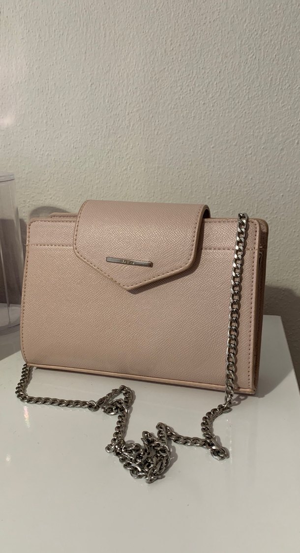 Bej renkte, zincir detaylı deri kadın çantası, modern klasik stilde ve günlük kullanım için uygun, Paris esintili şıklık sunar.