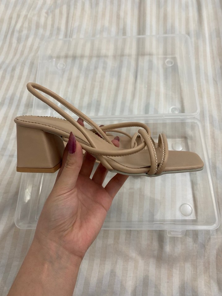 Bej Zincir Detaylı Stiletto Kadın Sandalet