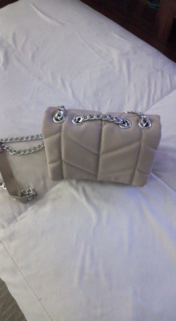 Bej süet malzemeden yapılmış, nakış desenli ve zincir detaylı kadın çantası, sokak modasına uygun ve günlük kullanıma idealdir.
