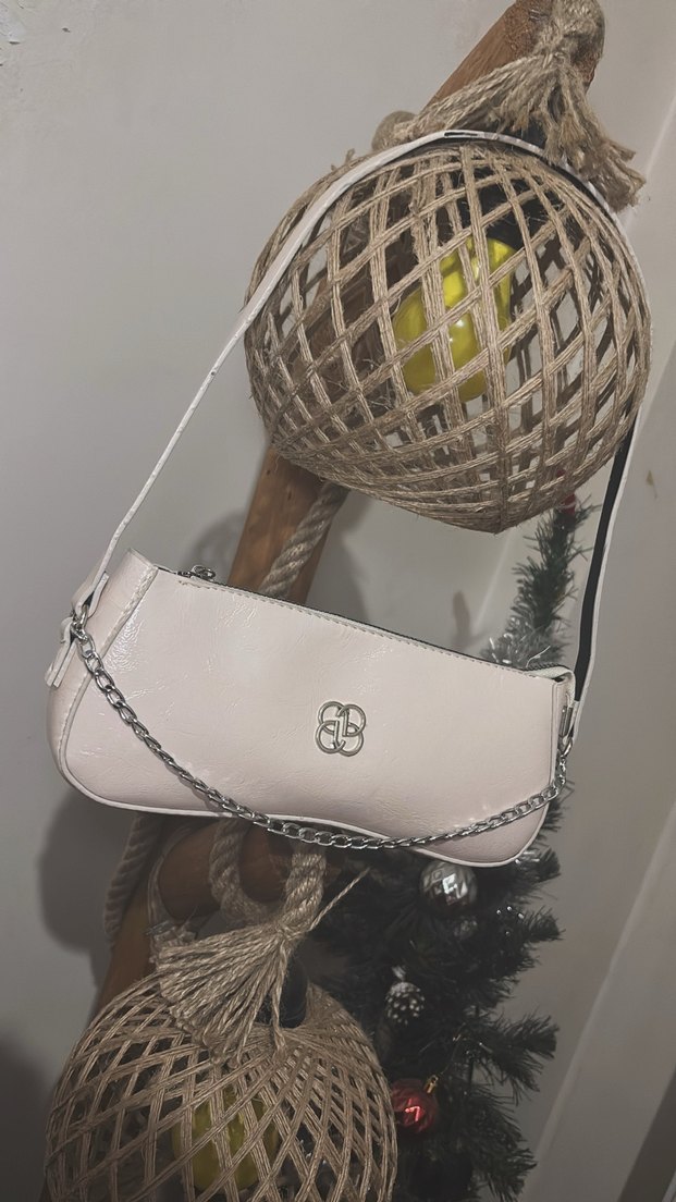 Bej Zincir Detaylı Yılan Desenli Deri Kadın Çanta