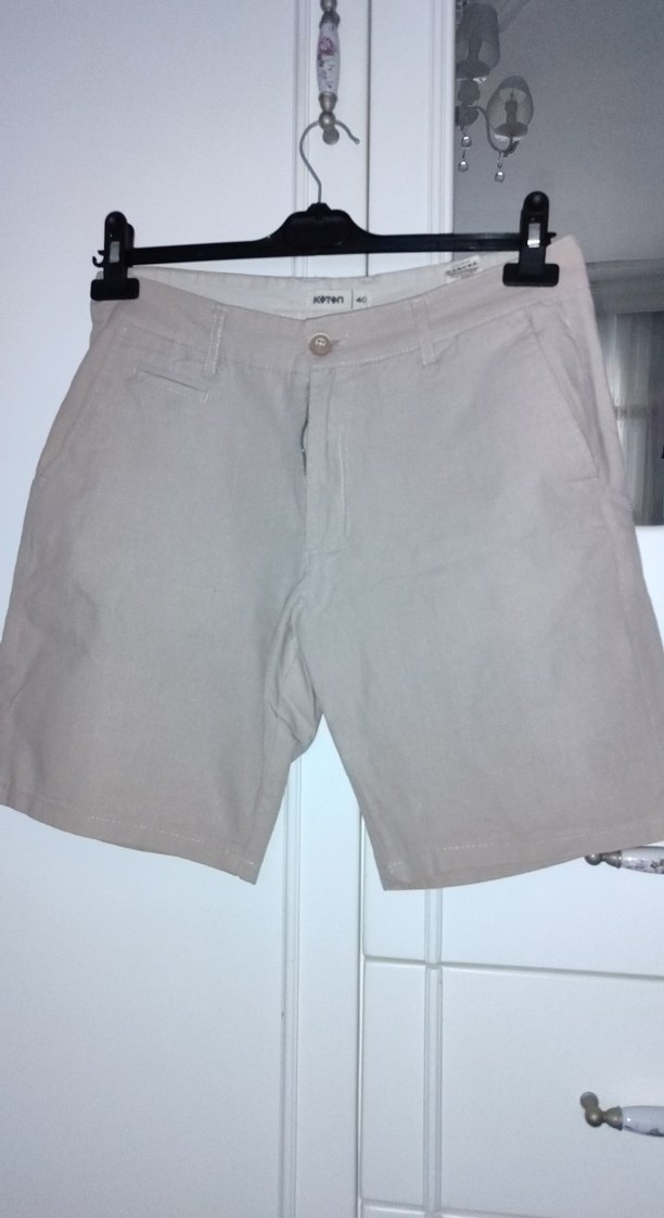 Koton markalı, düğmeli, baskılı desenli bej pamuk kadin şort. Normal kesim ve midi boydadır, günlük kullanıma uygundur. Beden 40.