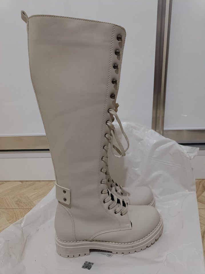 kadın çizme, bağcıklı ve kemerli tasarıma sahip. Trend sokak stili için uygun, günlük kullanıma dayanıklı tabanlı.