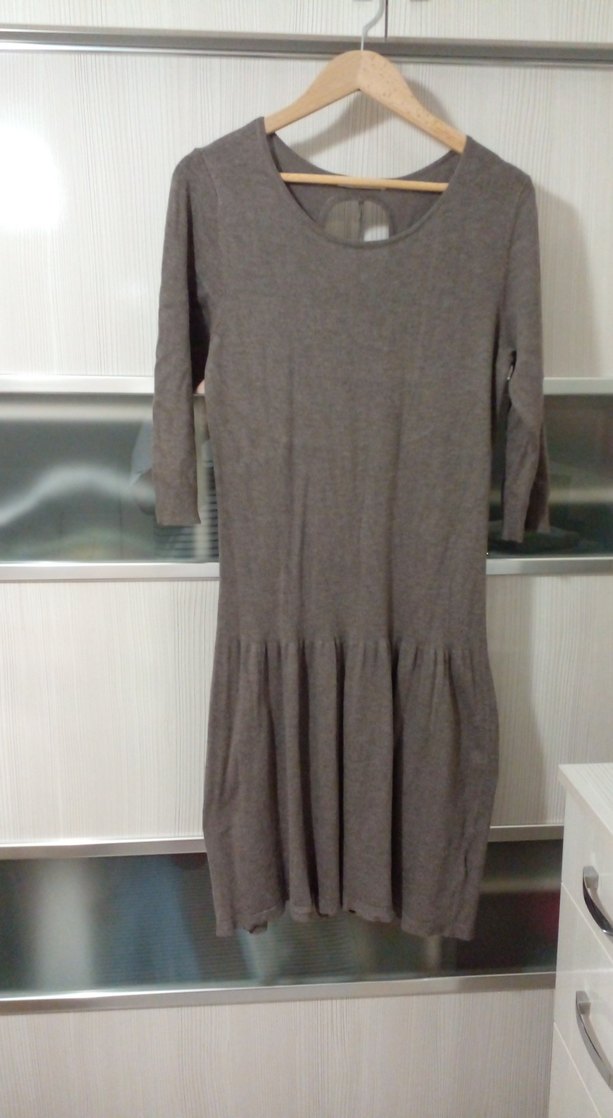 Bejrenkli, yuvarlak yakalı ve uzun kollu triko elbise. Rahat kesimi ve yumuşak keten kumaşıyla günlük kullanım için uygundur.