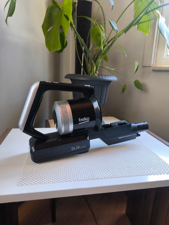 Beko marka kablosuz siyah elektrikli süpürge, 25.2V batarya gücüyle etkili temizlik sağlar. Hafif ve kullanımı kolaydır. şarj aleti olmadığı için deneyemedim durumu bilinmiyor