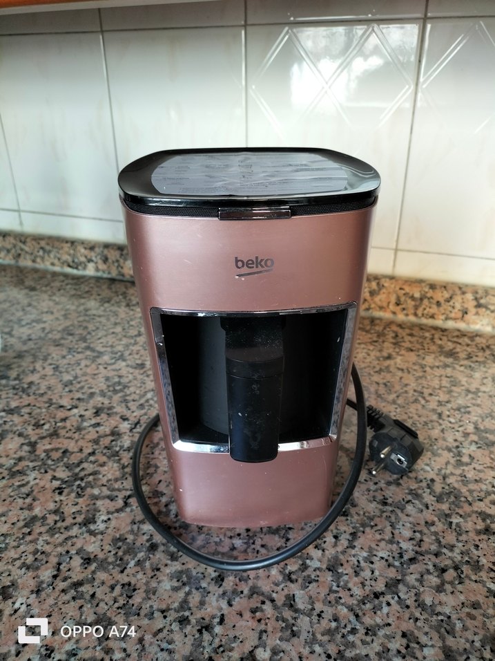 Beko markalı koyu kahverengi kahve makinesi, ön tutma sapı ve kablosuyla kullanımı kolaydır. ☕