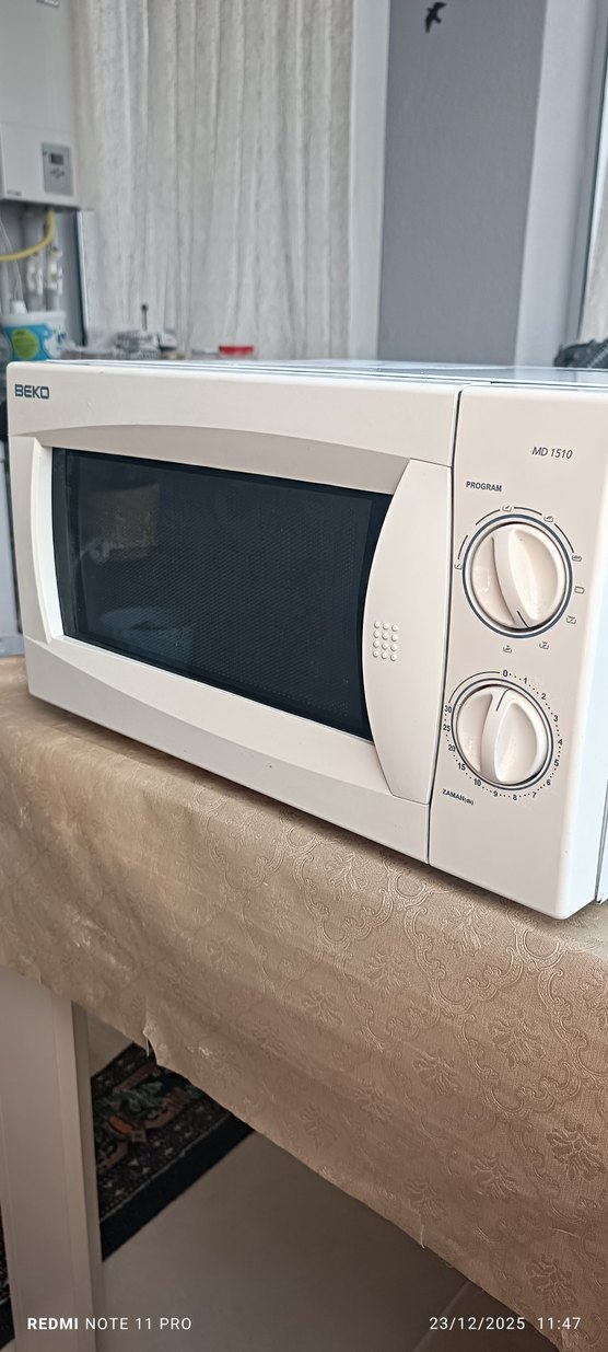 BEKO MD1510 beyaz mikrodalga fırın, program ve zaman ayarı için manuel düğmelerle donatılmıştır, ısıtma ve pişirme için uygundur. ⚙️