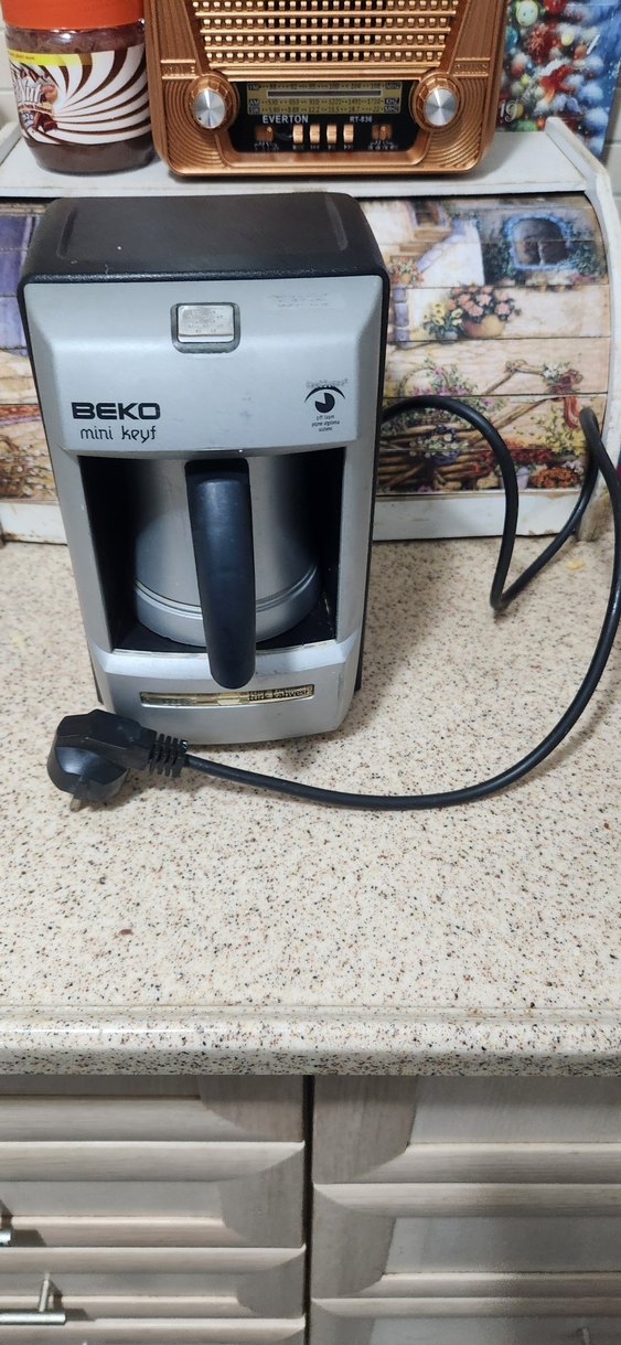 Beko Mini Keyf gri kahve makinesi, kullanışlı sap ve kablosu ile kompakt tasarıma sahiptir. ☕
