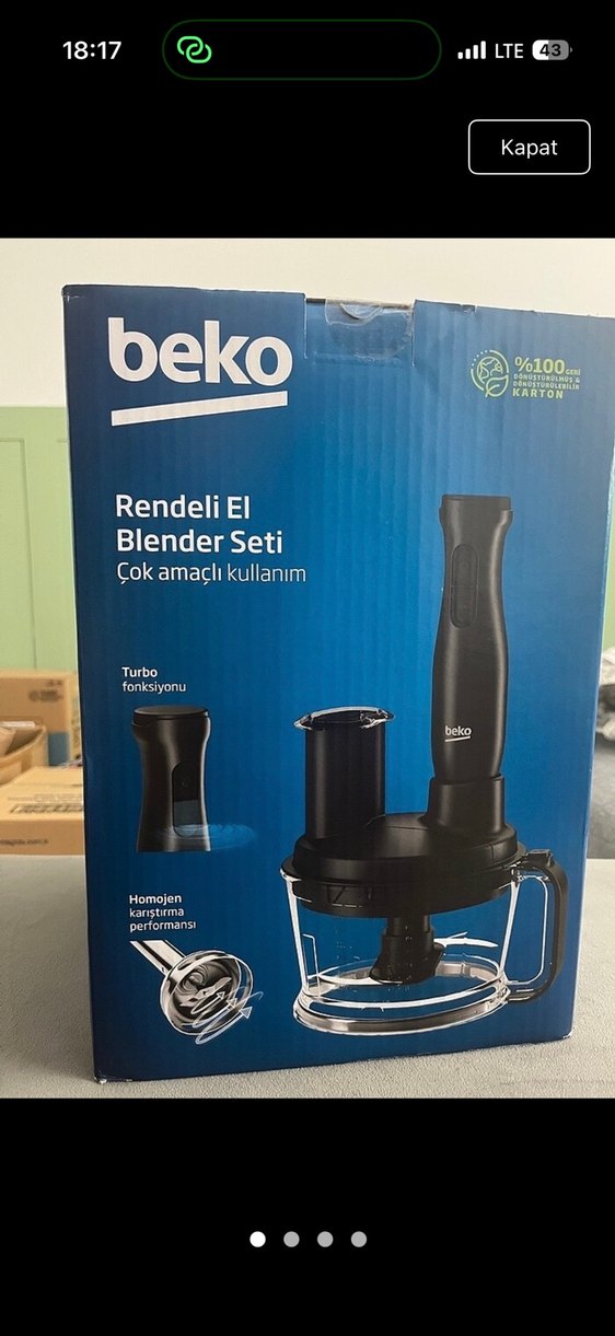 Beko Siyah Rende ve El Blender Seti kullanılmamış sıfır