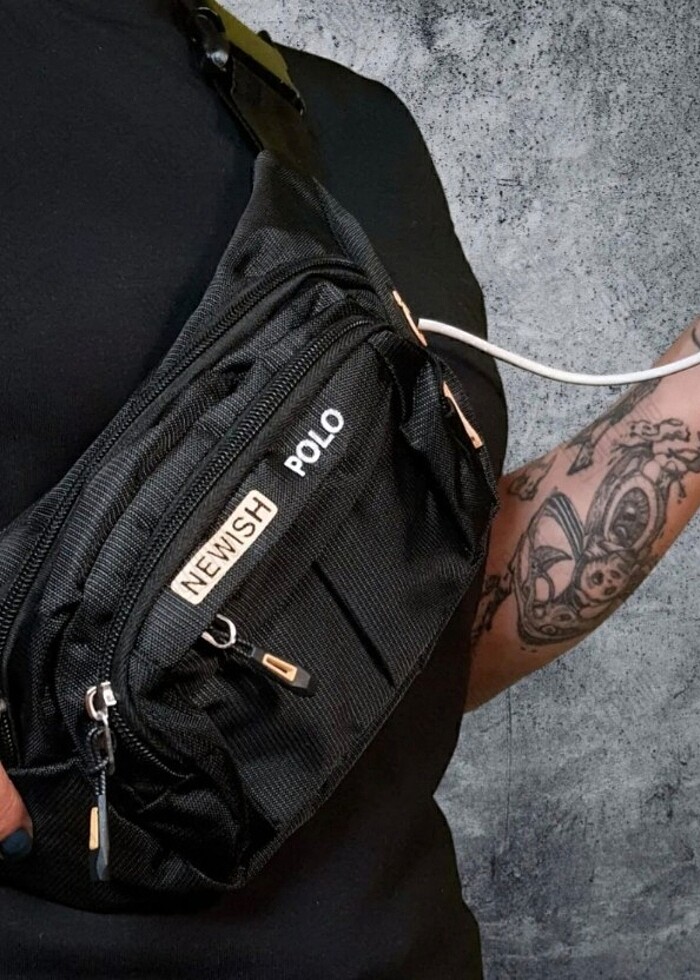 Su geçirmez Kablo çıkışlı Siyah bel çantası Çapraz kullanıma uygun kemer boyu