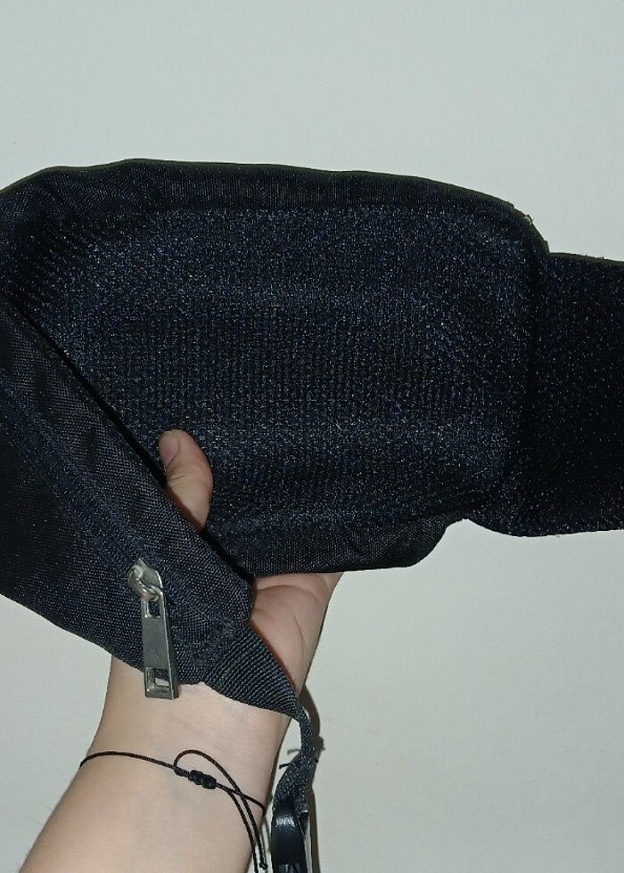 Siyah bel, omuz, göğüs çantası. 3 adet fermuarlı bölmesi bulunuyor. Hiçbir defosu yoktur. DÜŞÜK AYARDA makinede yıkanabilir.