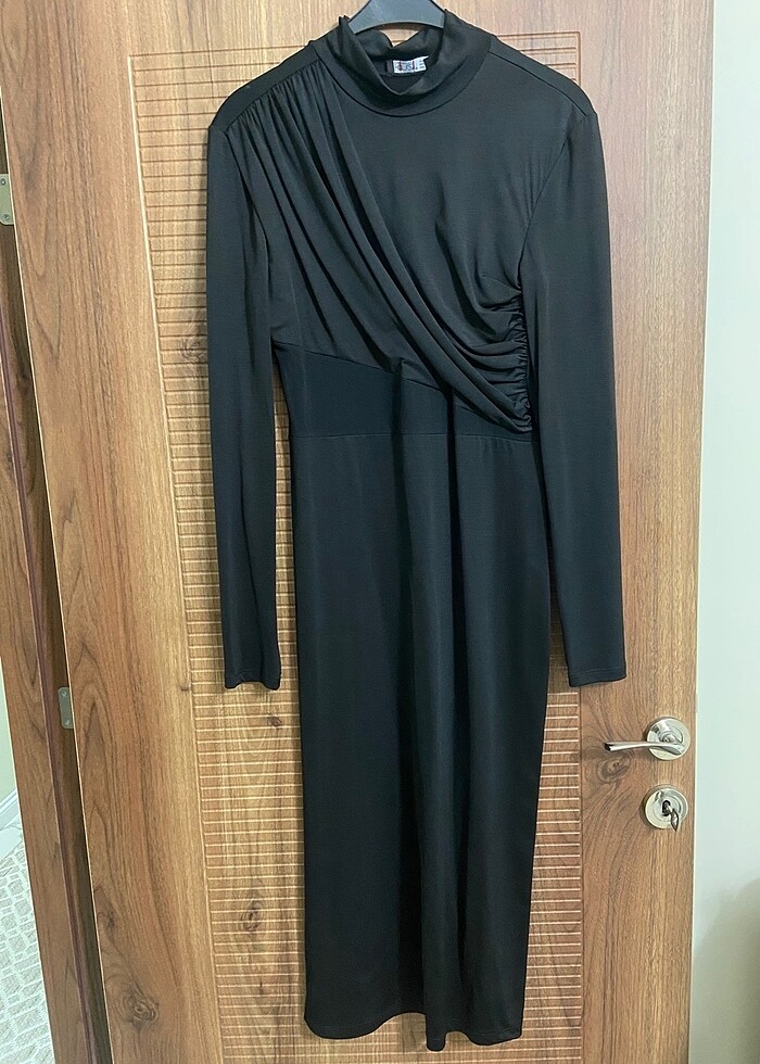 Ürün bir kere giyildi. Bir defosu yoktur. Likralı kumaş, bel detayı transparan tül, kolunda parmak detayı ve yandan yırtmacı mevcuttur