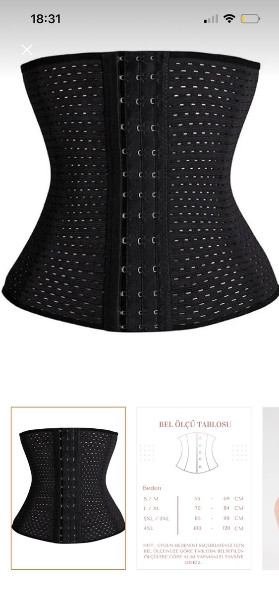Siyah, dikişsiz ve midi boyda olan bu korse, sıkı oturan yapısı ve çoklu çıtçıt kapaması ile bel desteği sağlar.