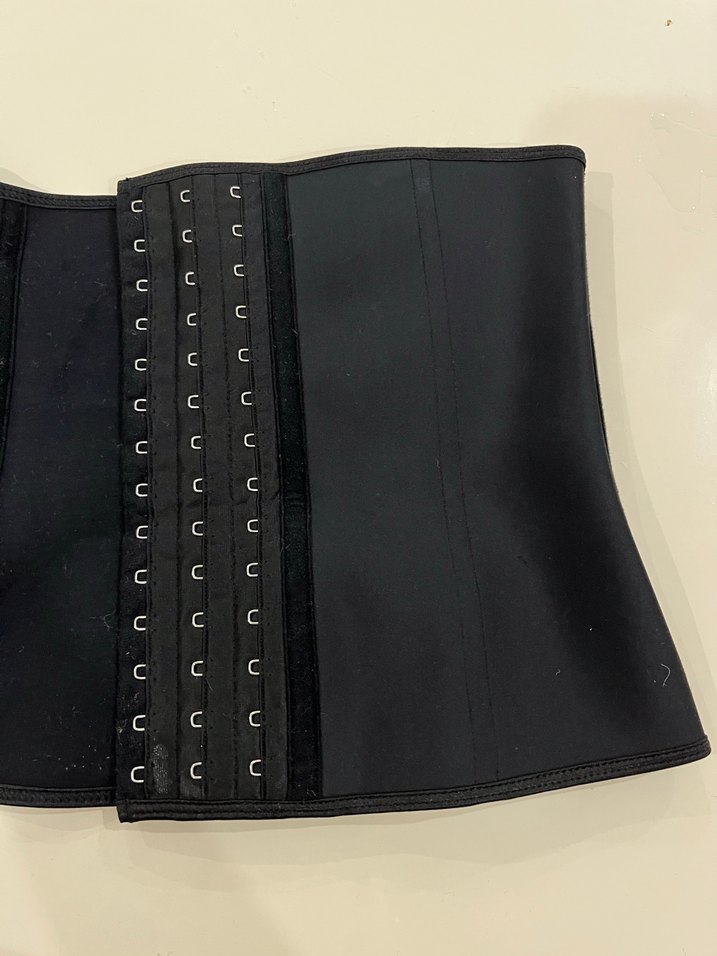 Düz desende, midi boyda, ayarlanabilir çoklu çıtçıtlı siyah bel korsesi. Bel şekillendirme ve destek sağlar.3 tane kopçası çıkmış bundan dolayı fiyatını uygun tutuyorum
