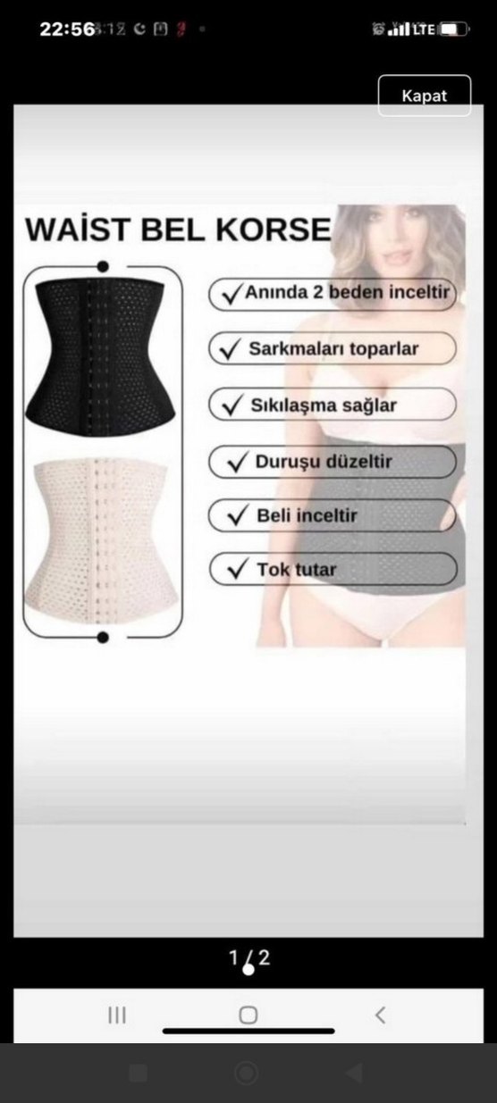 mini bel korsesi, beli inceltir, duruşu düzeltir ve sıkılaşma sağlar. Anında 2 beden inceltir, sarkmaları toparlar ve tok tutar 1 kez kullanıldı tene temas etmedi atlet üzerinde giyildi