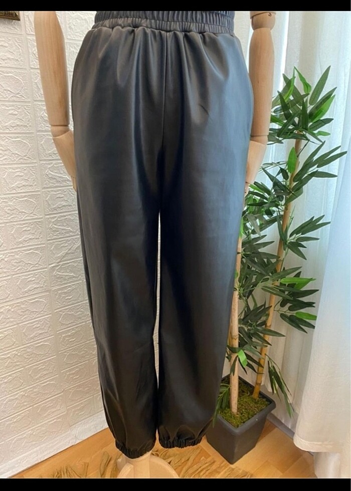 Bel paça lastikli içi polarlı deri pantolon
