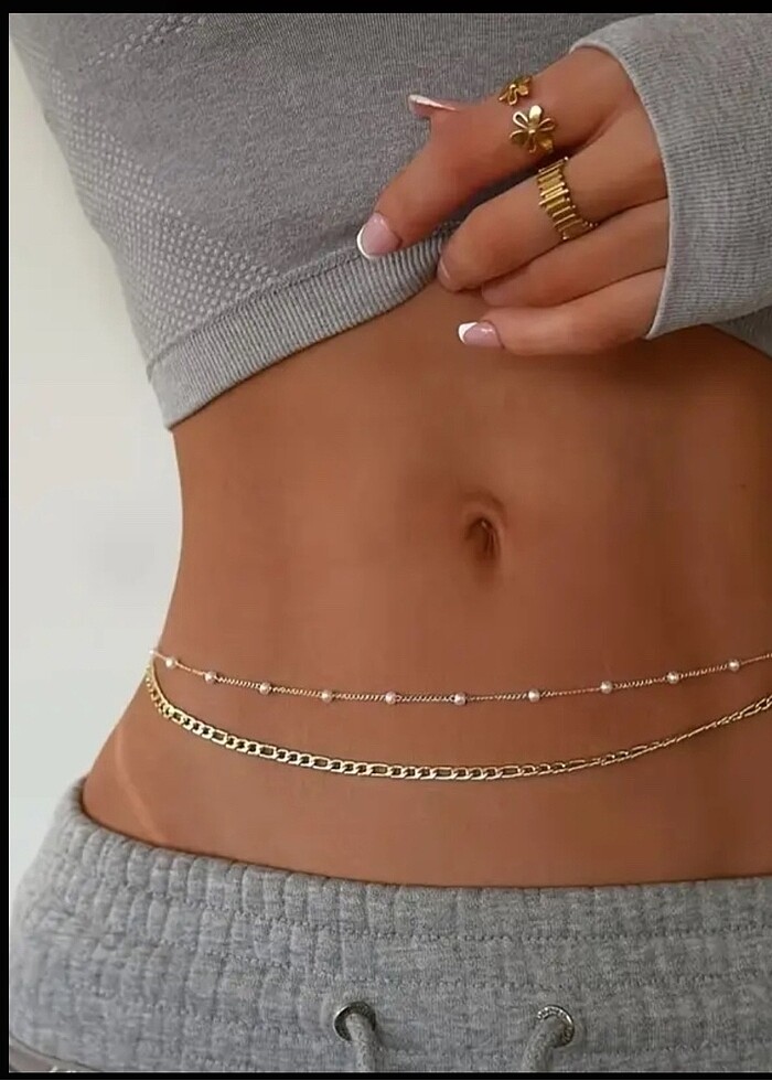 Vücut zinciri Gold gümüş iki renk seçeneği mevcuttur her bedene uygundur uzatmaya payı da vardır