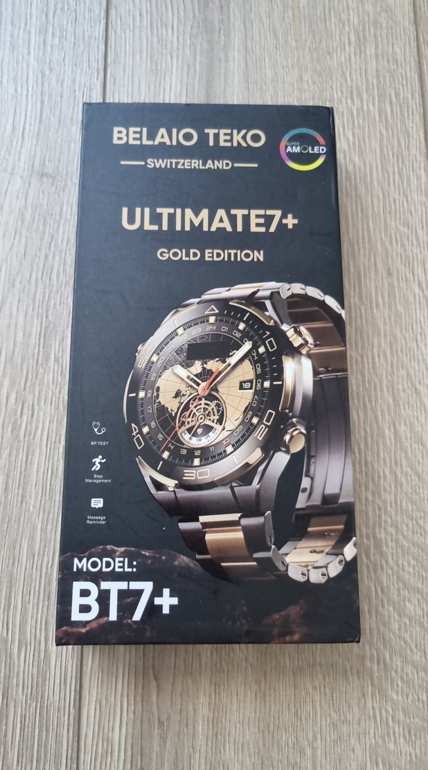 Belaio Teko Ultimate7+ Gold Edition akıllı saat, koyu altın renginde ve dayanıklı tasarıma sahip. BT7+ bağlantı, spor takibi ve mesaj bildirimleri sunar. kendi siyah silikon kordonu dışında birde metal kordonu geliyor 2 adet şarj aleti ile kablo kaybetmek artık sorun değil