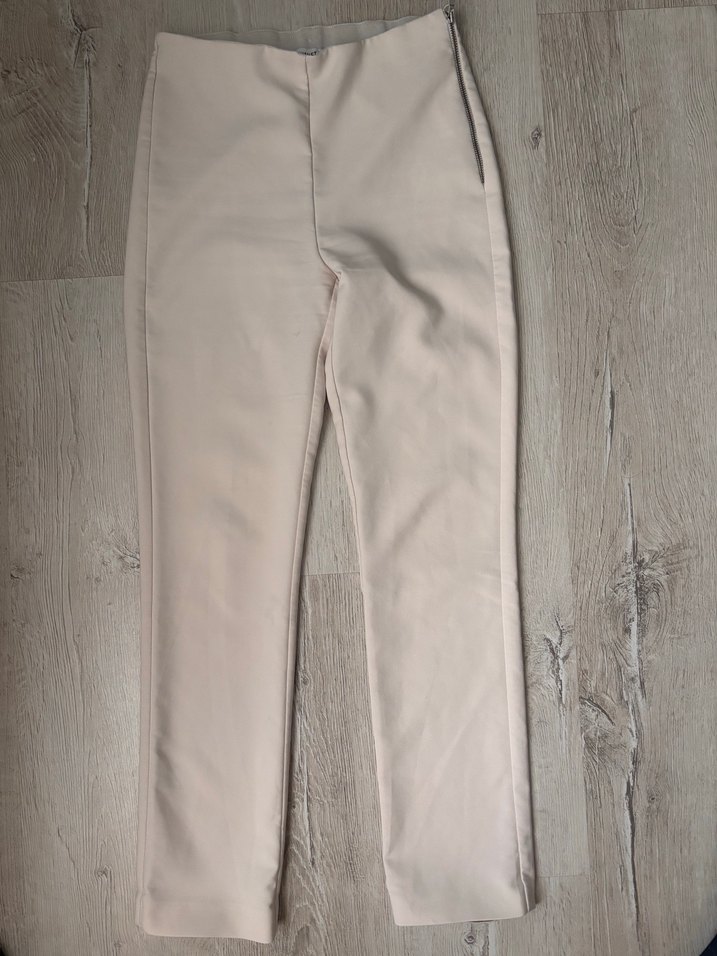 Beyaz, düz kesim ve desen içermeyen kadın kumaş pantolon, ofis için minimalist ve şık bir tarz sunar. ✨ bembeyaz değil kırık beyaz rengi 34 bedene uygun xs