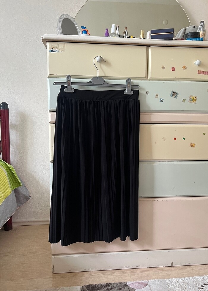 Pileli belden lastikli dizaltı etek renginde solma yok #yaz #etek #pile