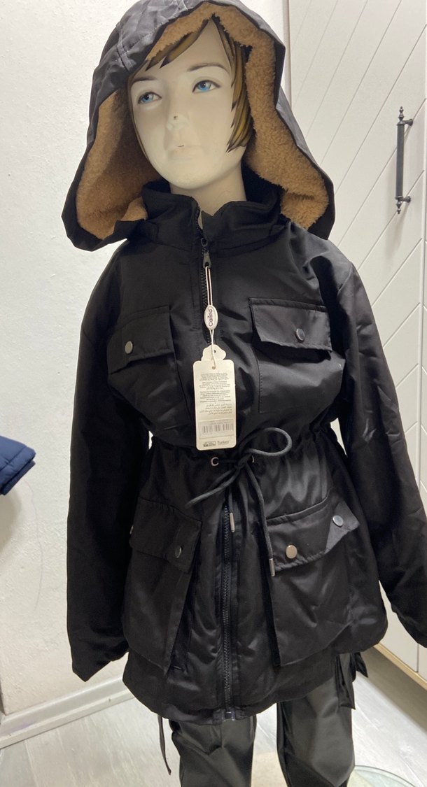 Büzgülü bel ve kapüşonlu, yumuşak astarlı siyah kadın mont. Dış mekan için uygun, cepli ve şık tasarımlı. 12 yaş için uygundur 11-12-13 yaş için elimde mevcut