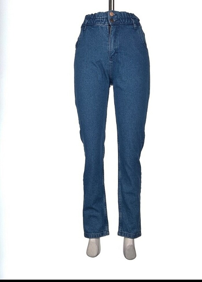 Beli hafif büzmeli iki düğmeli kot pantolon