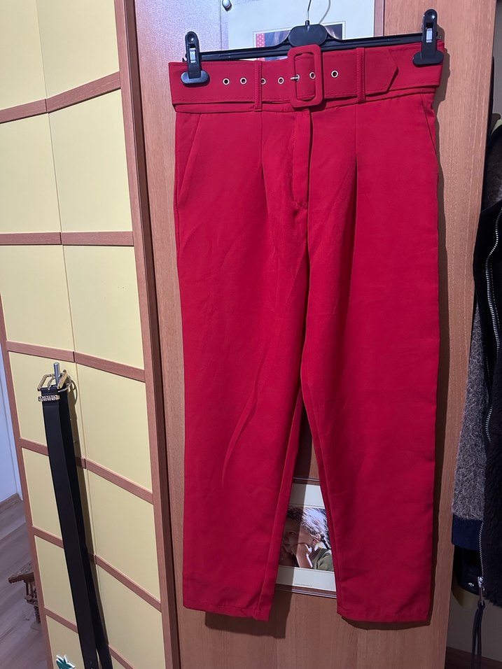 Sentetik kumaştan, parlak kırmızı renkte, beli kemerli ve bol kesim midi kadın pantolonu, günlük rahat kullanım için uygundur. Dedo yok almayacaksanız teklif vermeyiniz bir kere giyildi butik ürünü marka temsili #adidas #bershka #nike #lcwaikiki #penti #koton #gusto #ltb #mango #bershka #pullandbear #ipekyol #fabrika #twist #batik #adilışık #lcwaikiki #defacto
