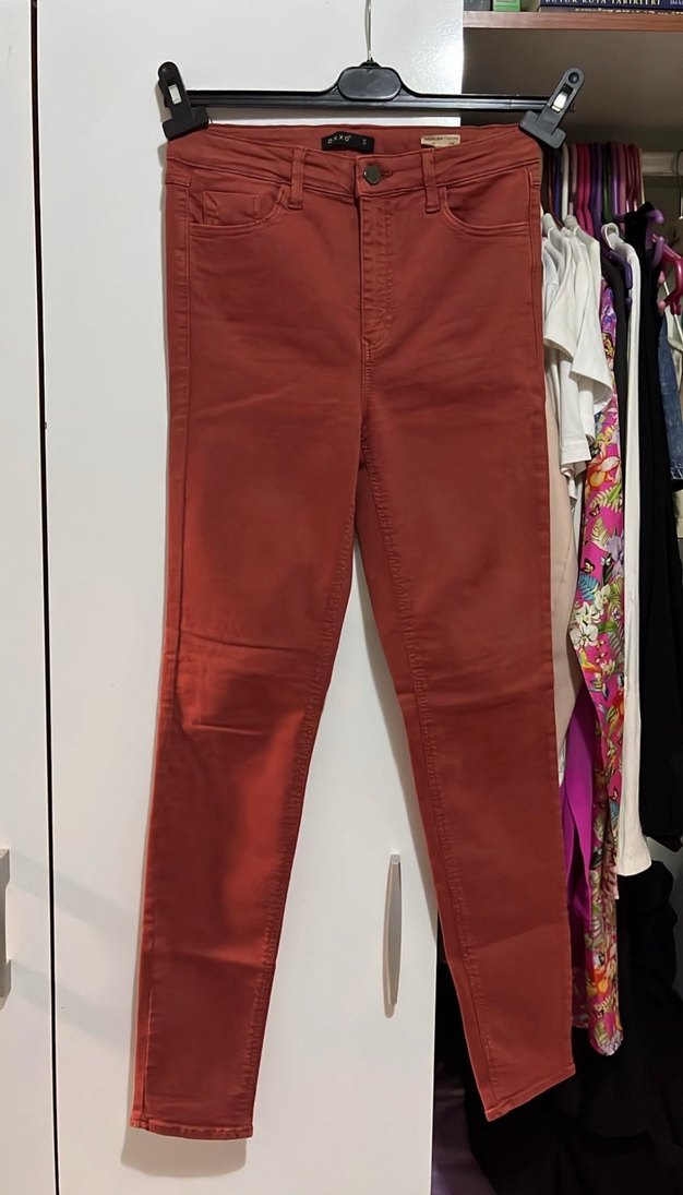 Kadınlar için beli kemerli, normal boy midi uzunluğunda, koyu kahverengi batik desenli ve yumuşak sentetik kumaştan yapılmış dar kesim pantolon. Günlük sokak tarzına uygun.