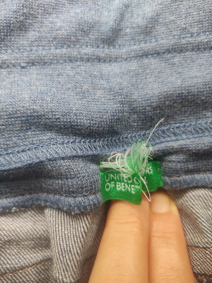 Beli lastikli kot pantolon desen içermeyen rock punk tarzı. Üzerinde yeşil "UNITED OF BENE" etiketi bulunur.