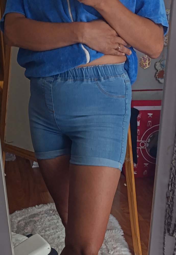 Beli lastikli, mini boy açık mavi fitted denim şort, günlük rahat sokak stili için uygundur. 12-13 yaş kız çocuk yazıyor ama 38 beden herkese olur hasarsız ve çok rahat
