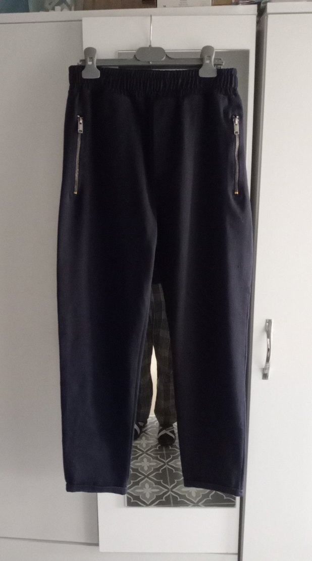 Bel 36 Cm Boy 95 Cm . Lacivert fermuarlı cepleri olan, yumuşak ve sıcak kumaştan rahat kesim eşofman. Tam lacivert