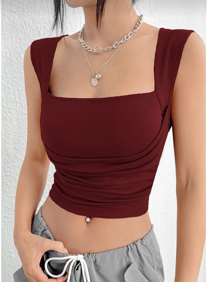 Beli Saran Bordo Kare Yaka Crop Bluz