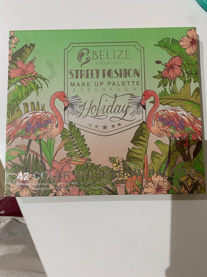 Belize Street Fashion makyaj paleti, 42 parlak ve canlı göz farı rengi içerir. Tropikal flamingo ve bitki desenli kutusuyla dikkat çeker. Cok az kullandim hijyenik bi sekilde