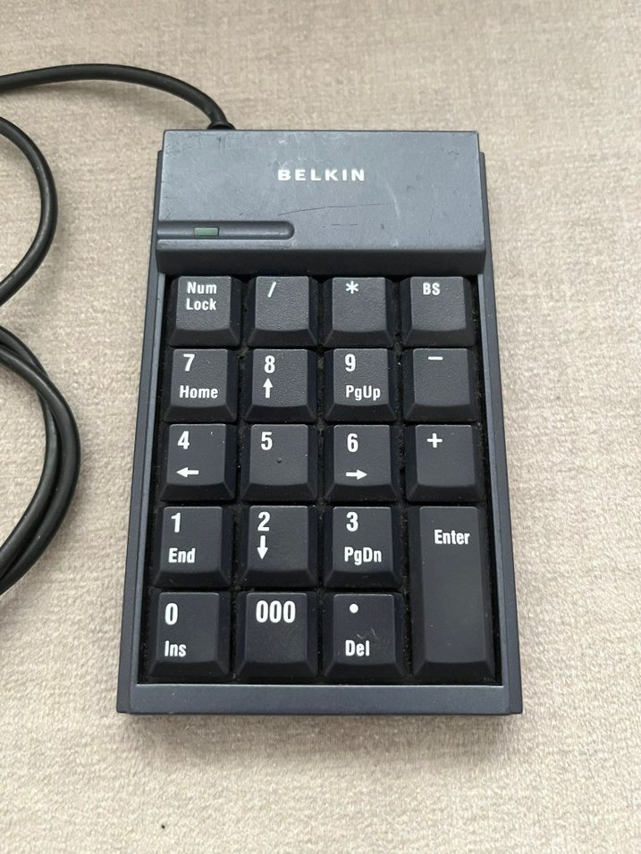 Bu Belkin sayısal klavye koyu gri renkte, kablolu bağlantıya sahip ve Num Lock, Enter ile gezinme tuşlarını içerir. Sayısal veri girişi için uygundur.