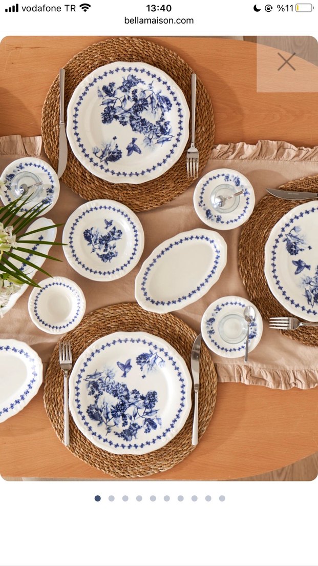 Mavi tonlarda çiçek ve kelebek desenli tabak ve kaselerden oluşan yemek takımı. Sofralarınıza şıklık katar. Bazı tabaklarda kılcal renk değişimleri olduğu için fiyatı uygun tuttum. Fotoğraflarda görebilirsiniz. Kullanıma engel değil. Şık bir takım.
