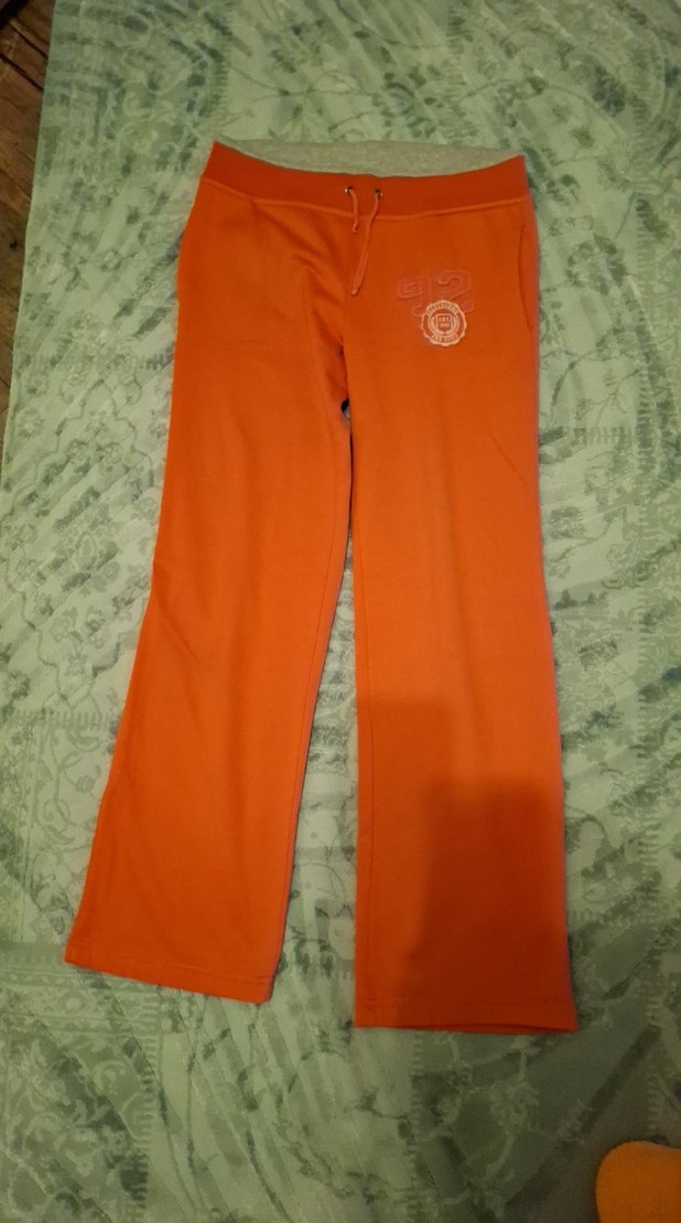 Yumuşak ve sıcak kumaştan, beli bağlamalı, turuncu, bol kesim midi uzunluğunda kadın eşofman altı. Spor ve sokak tarzına uygun.