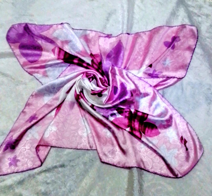 Renkli pembe fular, ipek görünümlü dokusu tarzlarını yansıtıyor 2 defa kullanılmıştır iade kabul edilmemektedir. teklif açığım