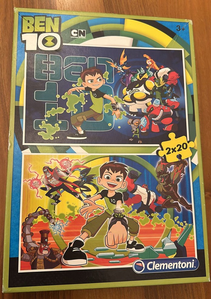 3 yaş ve üzeri çocuklar için, Ben 10 temalı, 2x20 parçadan oluşan renkli Clementoni puzzle seti