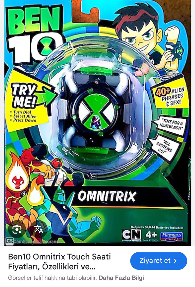 Yeşil renkli Ben10 Omnitrix dokunmatik saat aksiyon figürü, 40'tan fazla uzaylı ifadesi ve ses efekti içerir. 4 yaş ve üzeri için uygundur.