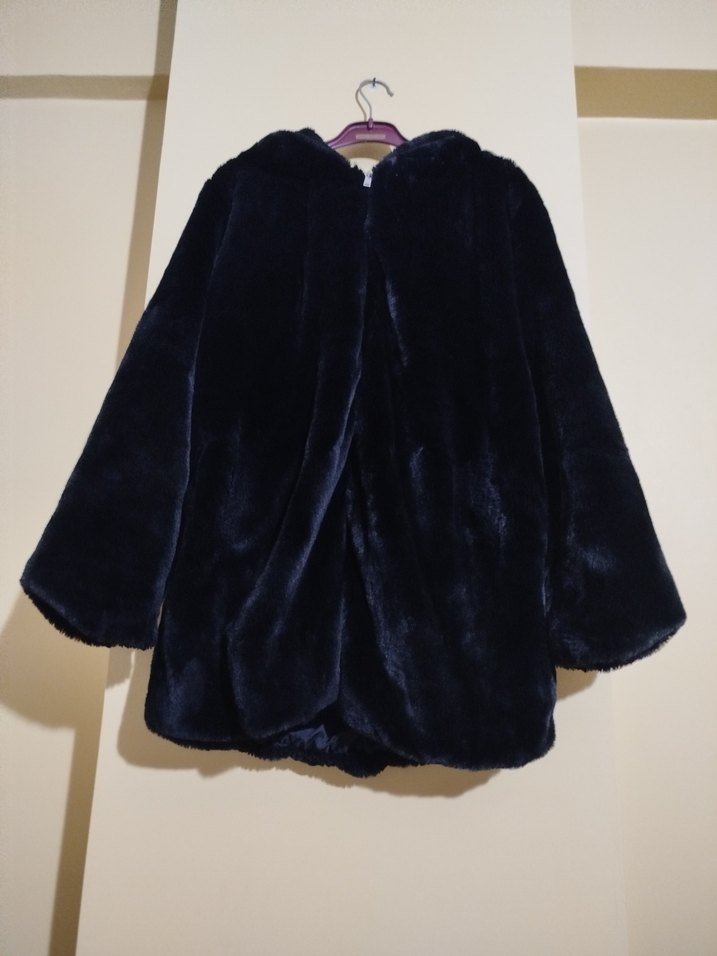 Yumuşak peluş kumaştan yapılmış, kapüşonlu, uzun kollu ve bol kesim siyah sahte kürk mont. Rahat ve gotik tarzlar için uygundur. Romantik akşamlar için ideal.Sayılı giyildi yeniden farksiz.Ayni isimle internetten fiyatina bakabilirsiniz 2500 liradir.iki gogus arasi 57 cm boy 75 cm