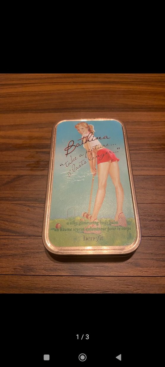 Benefit Bathina, cilde hafif parlaklık veren ışıltılı bir vücut balmıdır. Vintage tarzı kapaklı metal kutuda sunulur. ✨