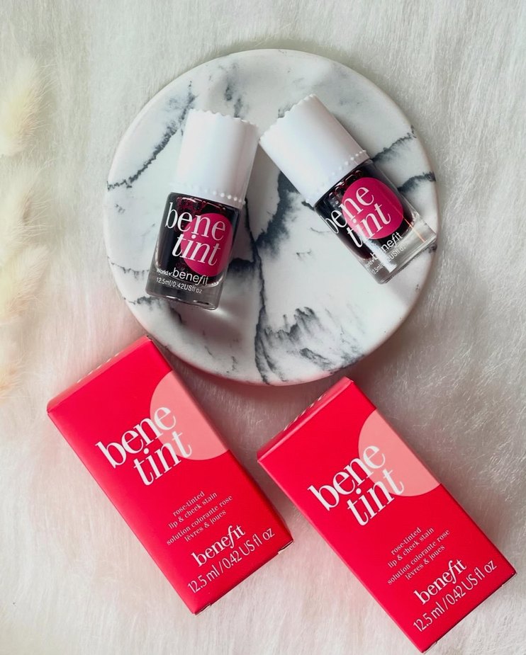 Benefit Benetint, 12.5 ml şişede parlak pembe renkte canlı bir allık sunar.