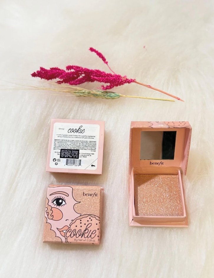 Benefit Cookie pastel pembe allık, doğal ve hafif ışıltılı bir görünüm sağlar. Kompakt kutusunda aynası mevcuttur.
