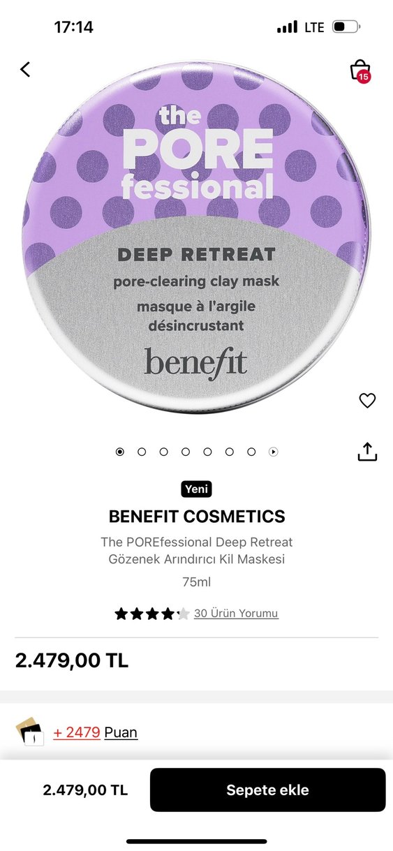 Benefit Cosmetics The POREfessional Deep Retreat 75ml gözenek arındırıcı kil maskesi, derinlemesine temizlik sağlar. ♀️./21