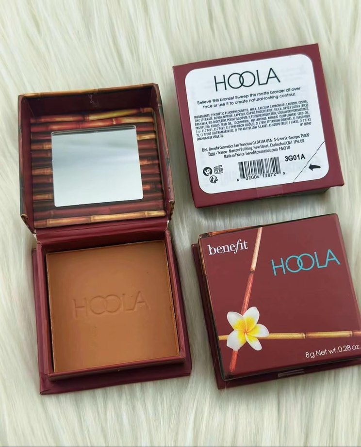 Benefit Hoola bronzer, parlak bej tonunda, doğal güneşten bronzlaşmış görünüm sağlar. 8g'lık kompakt kutuda ve aynalıdır.