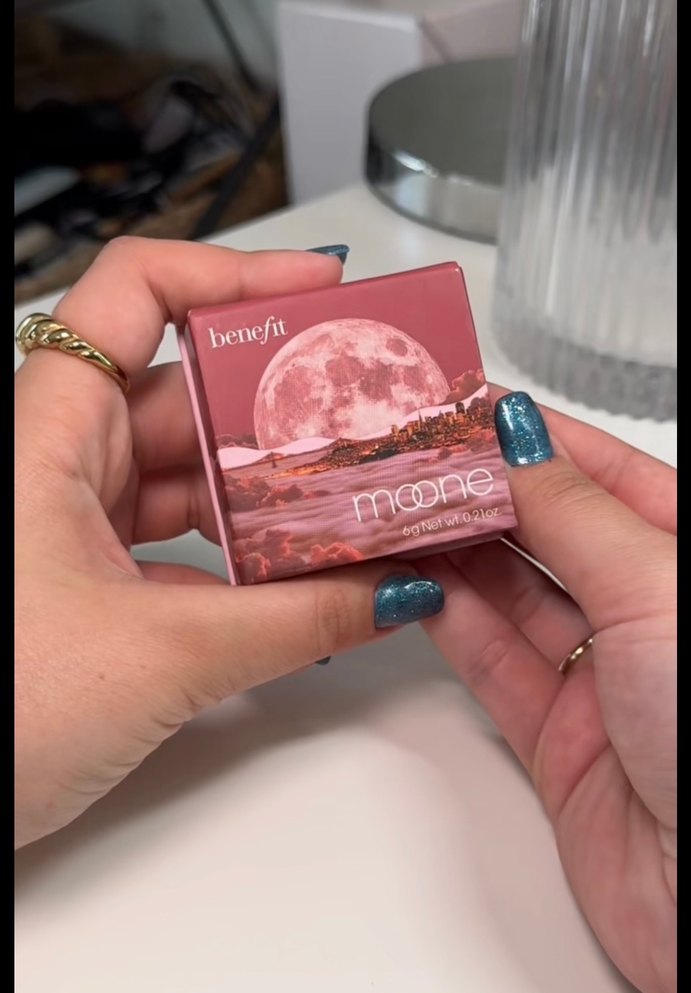 Benefit Moone parlak pembe renkte, yanaklara doğal bir parlaklık veren allık. Kompakt tasarımıyla taşıması kolay.