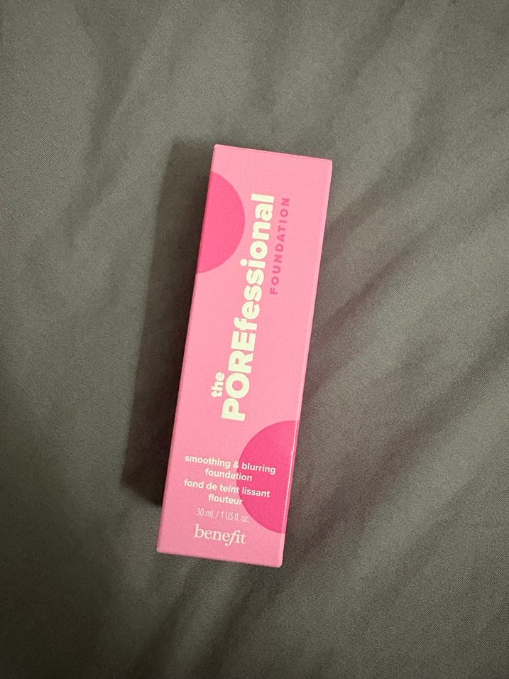 Benefit POREfessional fondöten, yumuşatıcı ve bulanıklaştırıcı etkileriyle kusursuz bir görünüm sağlar. 30 ml, pastel pembe ambalajda.