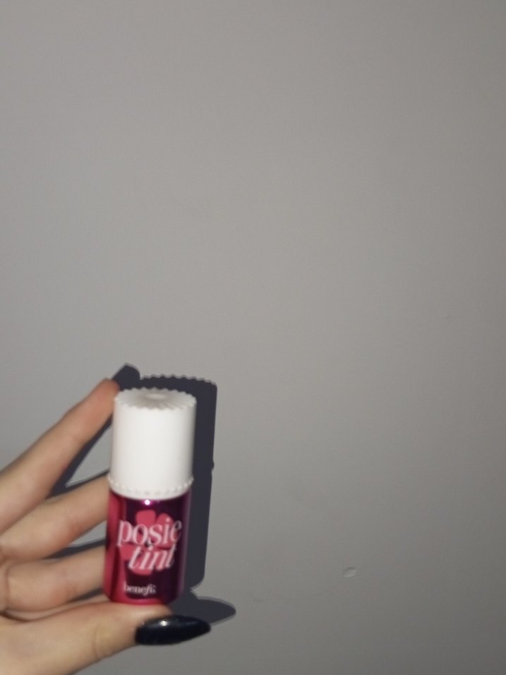 benefit Tint, beyaz kapaklı küçük şişede pembe allık tonu, yanaklara doğal bir renk katar.