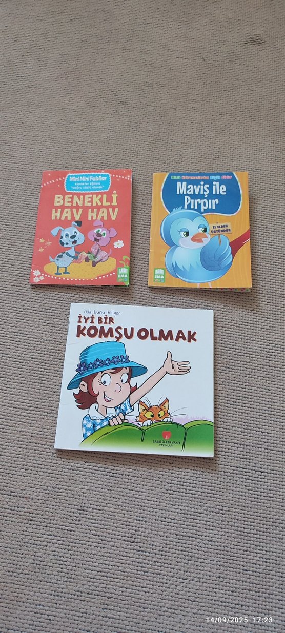 Hayvanlar ve komşuluk üzerine üç çocuk kitabı: "Benekli Hav Hav," "Mavis ile Pirpir," ve "İyi Bir Komşu Olmak."
