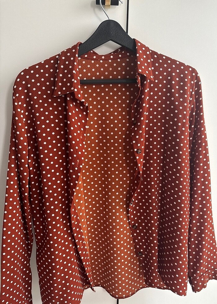 Ürün çok temiz kullanıldı, etiketi yok, çok şık bir gömlek S-M beden uyumlu.